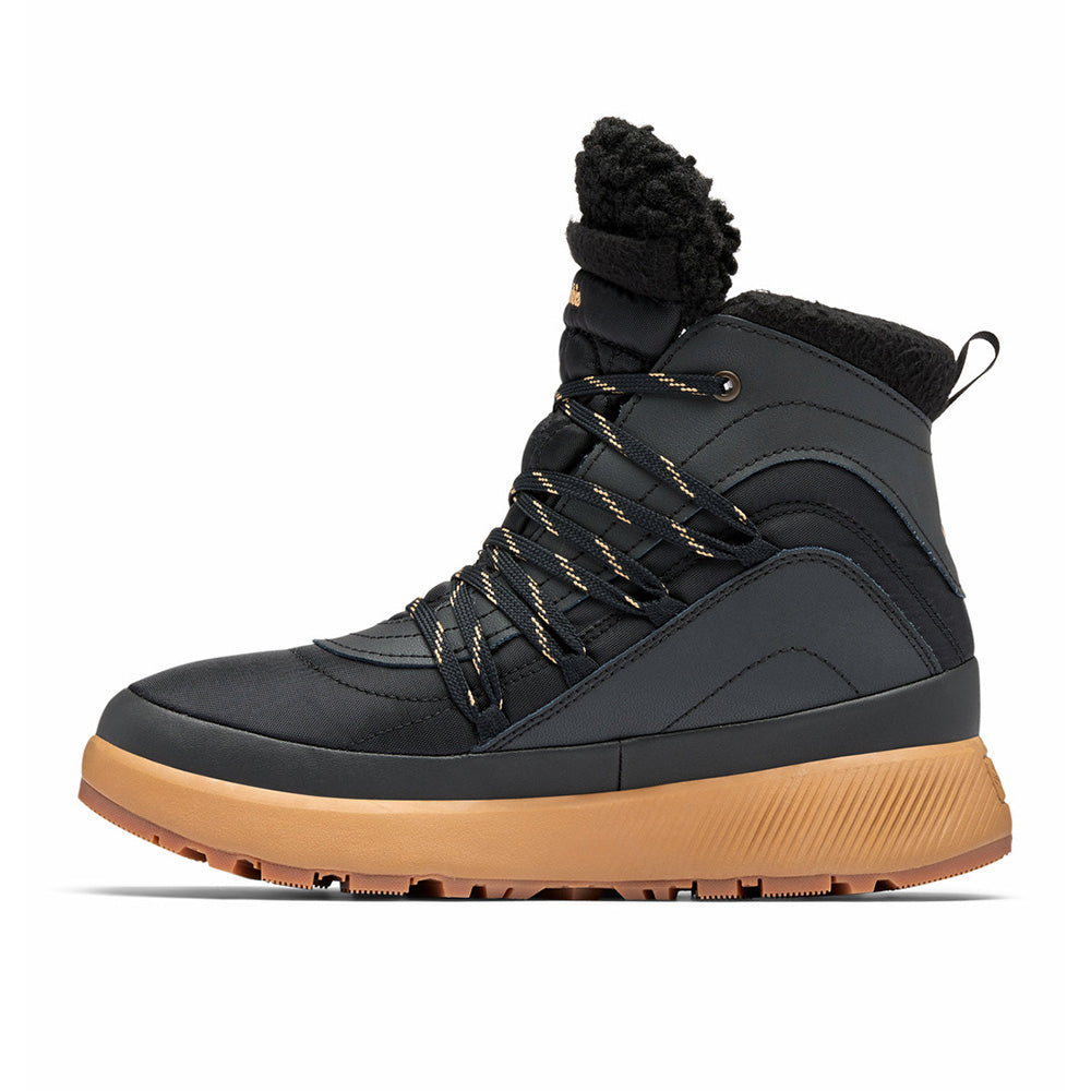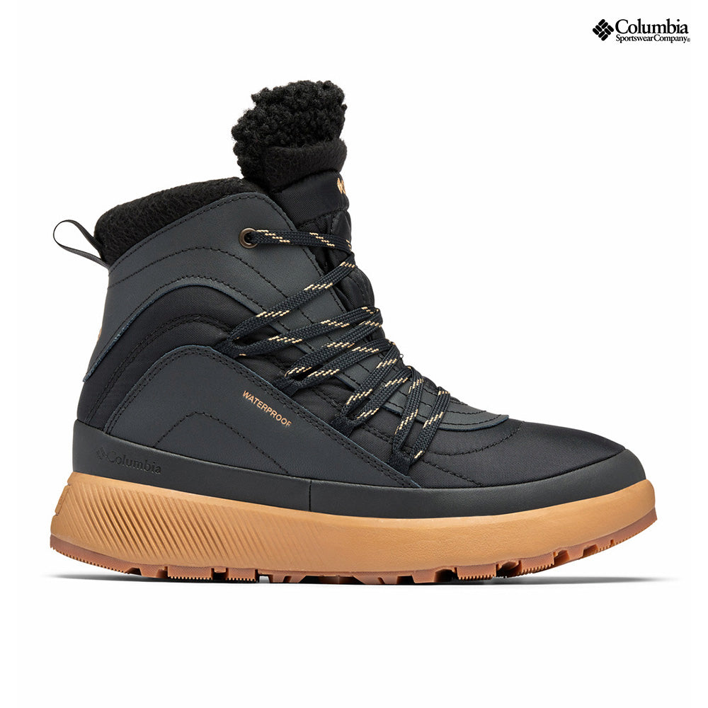 Upper: Waterproof textile upper with leather overlays. Fleece and faux fur collar