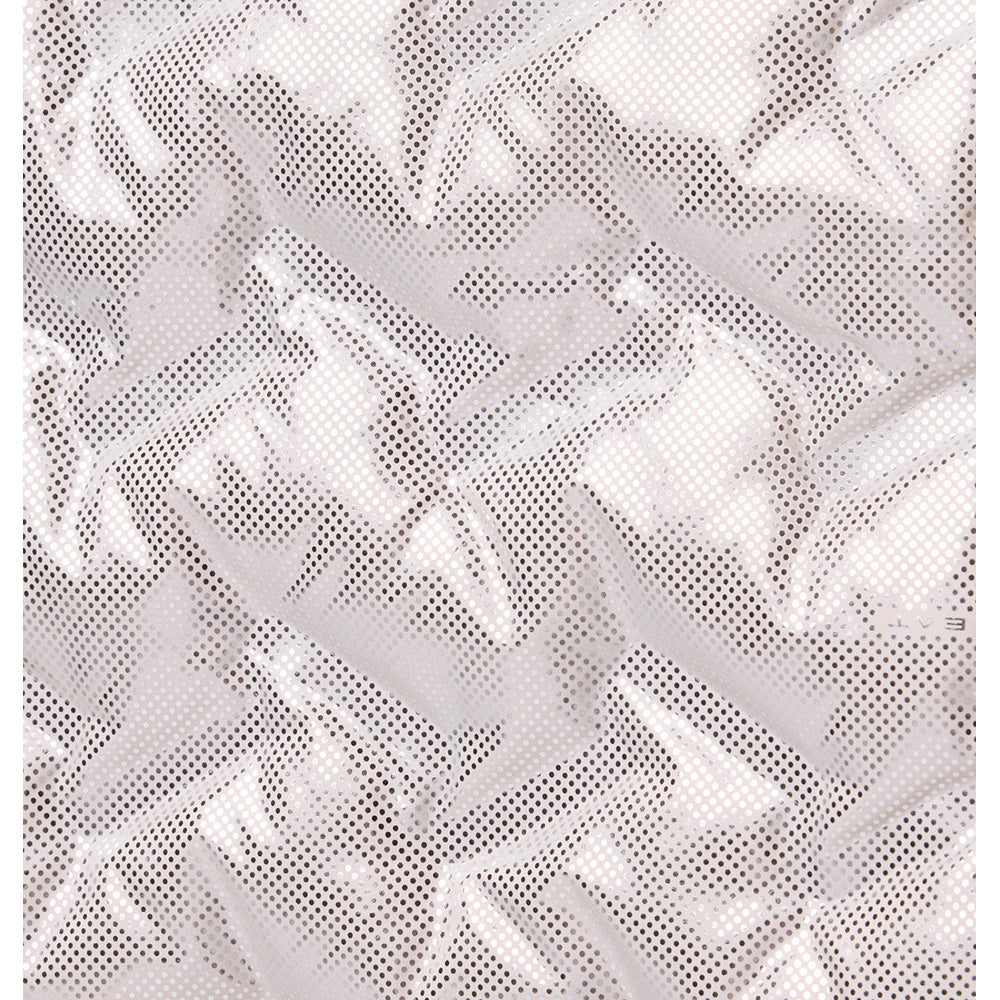 Close up of fabric with the Omni Shield logo in the bottom left and a graphic showing how moisture beads on the fabric's surface.